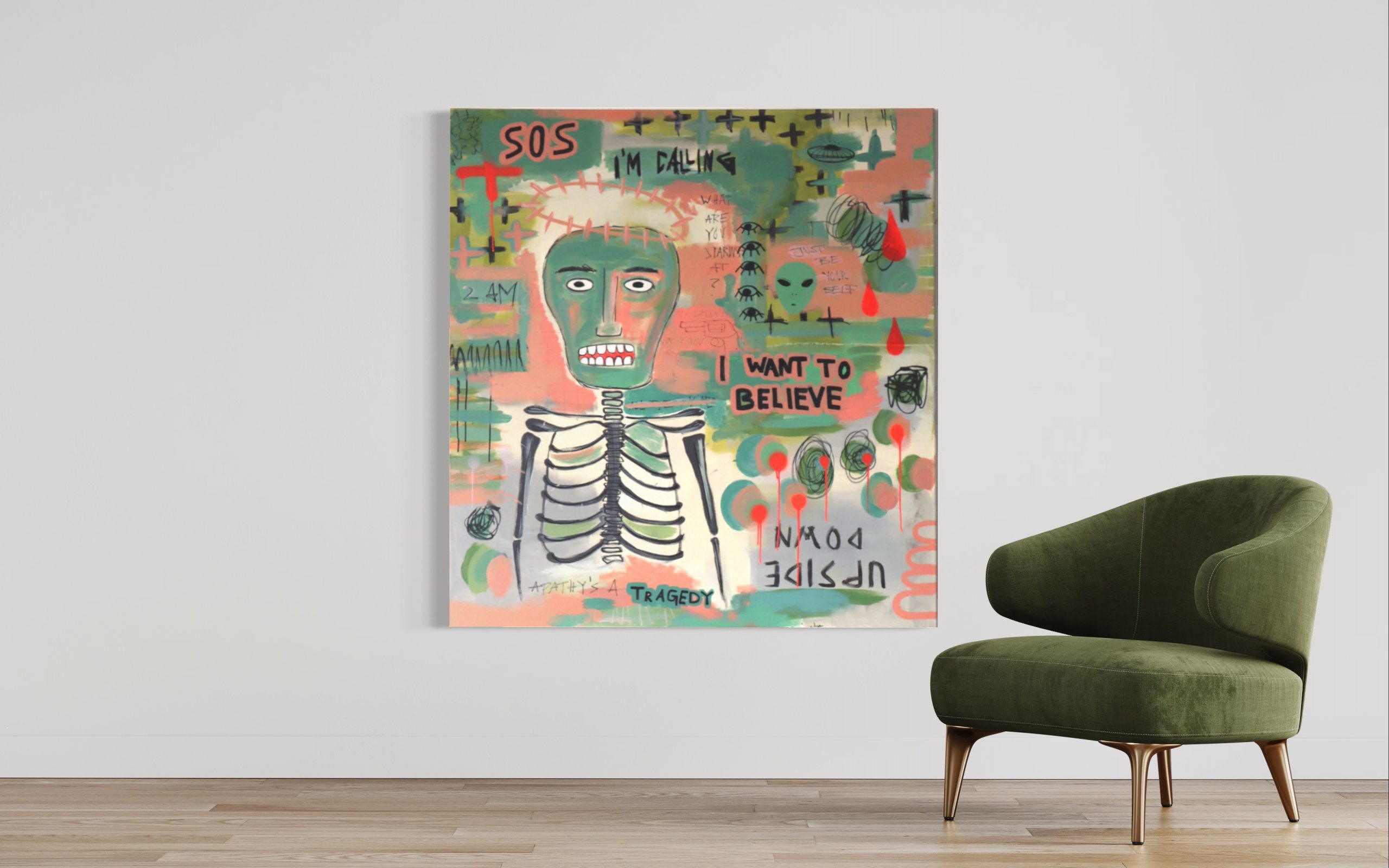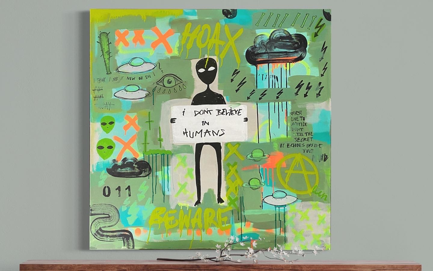 Acryl, Spraypaint auf Leinwand